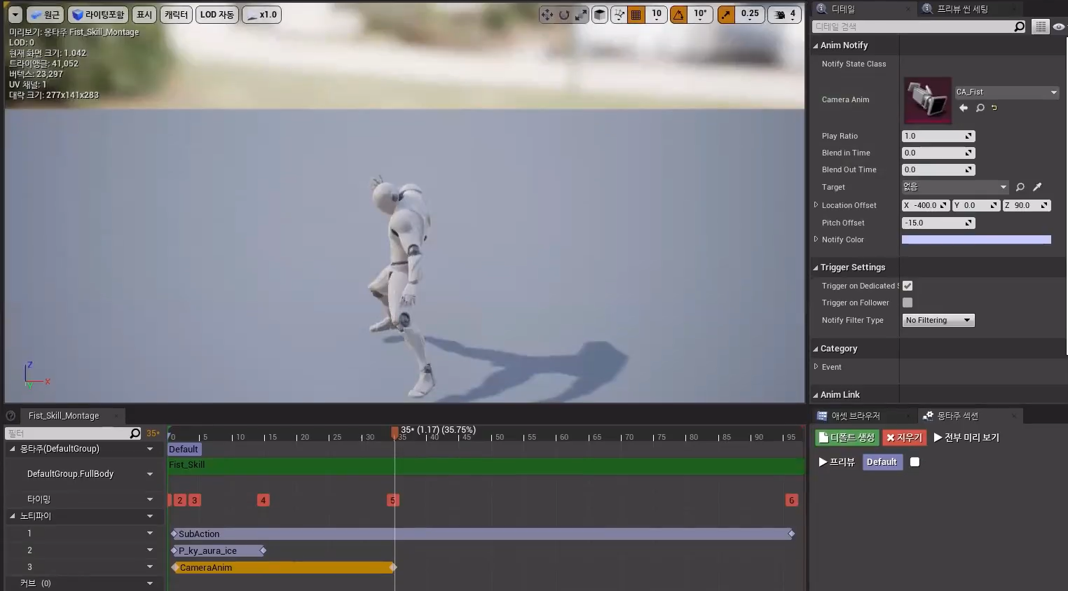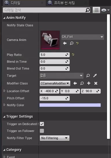 Fist 스킬을 시전할때 카메라 이동 효과를 주게끔 만들어 볼 것이다. 노티파이로 카메라 시전 효과를 주게되는데 중요한 점이 하나있다.